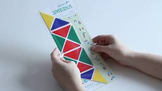 Прямоугольник (картон на тканевой основе) не более 70х280 мм, состоящий из 32-х треугольников. 16 красно-зелёных – на одной стороне, 16 жёлто-синих – на другой. Инструкция (цв. печать) со схемами сложения.